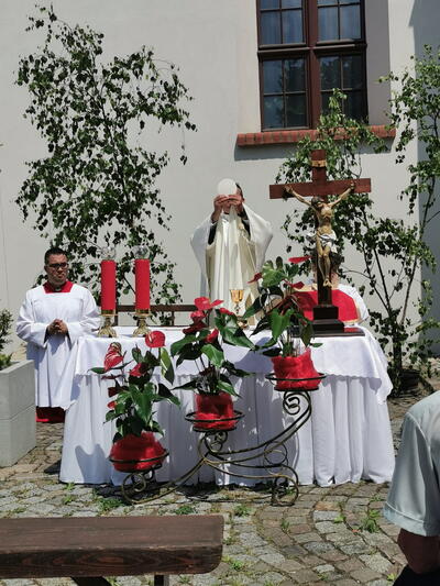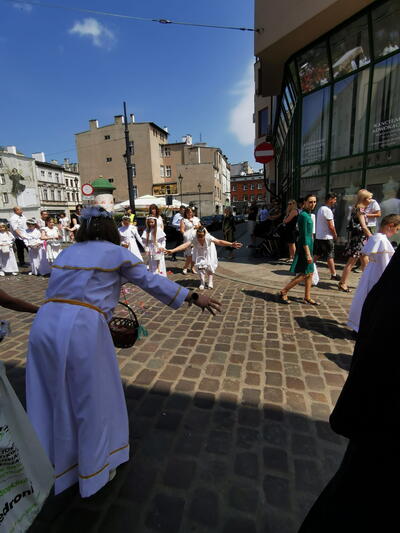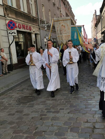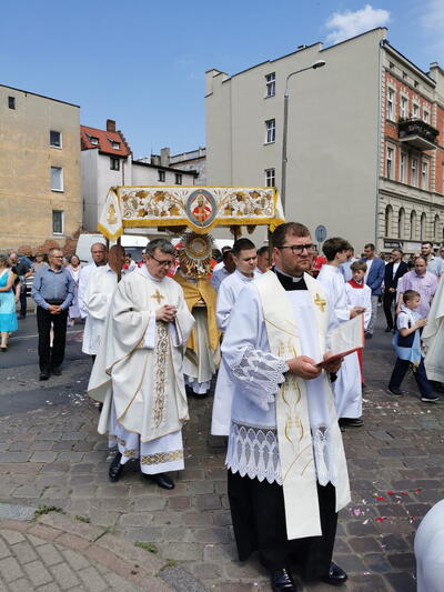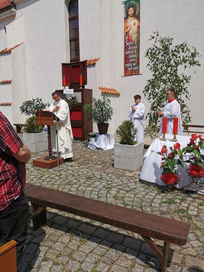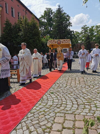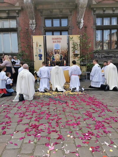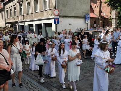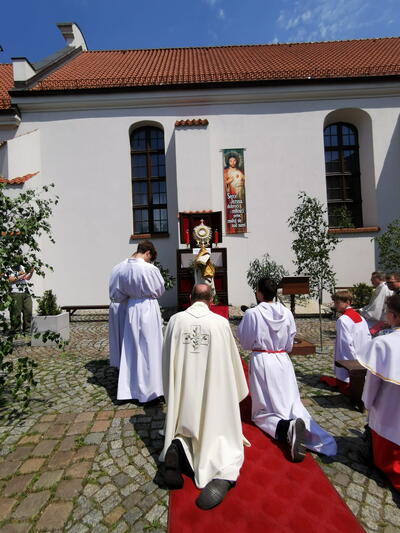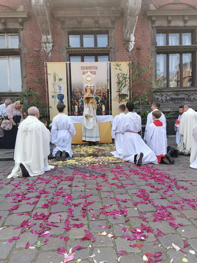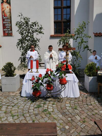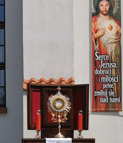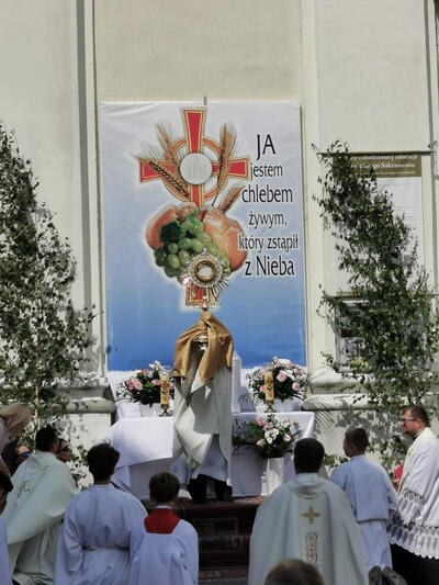 W czwartek po niedzieli Trójcy Świętej celebrowaliśmy uroczystość Najświętszego Ciała i Krwi Chrystusa, potocznie zwaną, Bożym Ciałem. Zwieńczeniem procesji eucharystycznej była Msza Święta sprawowana przy ostatnim ołtarzu, na dziedzińcu muzeum. Dziękujemy naszym parafianom i sympatykom oraz wspólnotom z naszego kościoła za zaangażowanie w przygotowanie ołtarzy. Oprawę muzyczną. Dziękujemy za niesienie sztandaru wspólnocie Żywego Różańca, dziewczynkom sypiącym kwiatki oraz Służbie Liturgicznej.