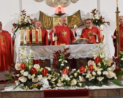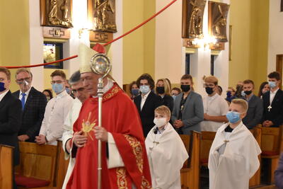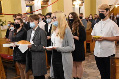 6 października o godzinie 18:00 siedem osób z naszej wspólnoty parafialnej przystąpiło do sakramentu bierzmowania. Wcześniej przygotowali się do tego sakramentu poprzez spotkania formacyjne z księdzem proboszczem oraz klerykami, uczestniczyli w Mszach Świętych, okresowych nabożeństwach liturgicznych oraz nowennie do Ducha Świętego. Przyjęli sakrament bierzmowania z rąk biskupa seniora Andrzeja Suskiego w kościele pw. Wniebowzięcia Najświętszej Maryi Panny w Grudziądzu. Słowo Boże do bierzmowanych skierował celebrujący Eucharystię bp. Andrzej Suski. Nasza młodzież czynnie zaangażowała się w liturgię. W tym miejscu warto dodać, że również Służba Liturgiczna z naszej parafii stanęła na wysokości zadania. Oskar, Szymon, Kacper i Piotr razem z kolegami ze sąsiedniej parafii, przygotowali rozbudowaną asystę liturgiczną.