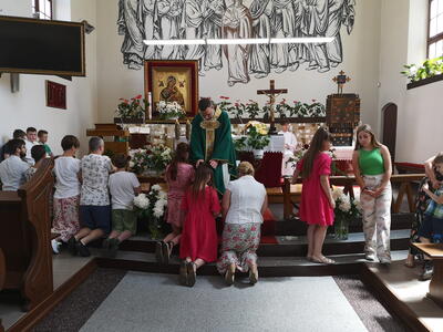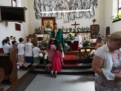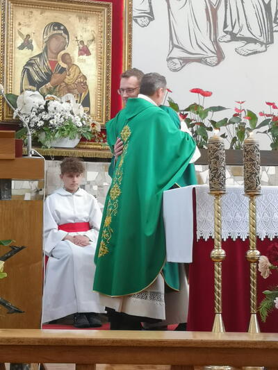 W niedzielę do naszej parafii przyjechał ks. Maciej Kozłowski, który odprawił tzw. Sekundycję, to kolejna Msza Święta po Prymicji, sprawowana przez neoprezbiterów w miejscach dla nich ważnych i z którymi byli związani, np. seminarium, parafia posługi diakońskiej itp. Ks. Maciej przez wiele lat był związany bardzo mocno z naszą wspólnotą parafialną. W kościele pw. Ducha Świętego był przez klika lat organistą oraz należał do wspólnoty młodzieżowej ,,Zjednoczeni w Duchu''. To wyjątkowa Eucharystia na koniec której wszyscy zebrani w kościele wierni mogli otrzymać błogosławieństwo papieskie.