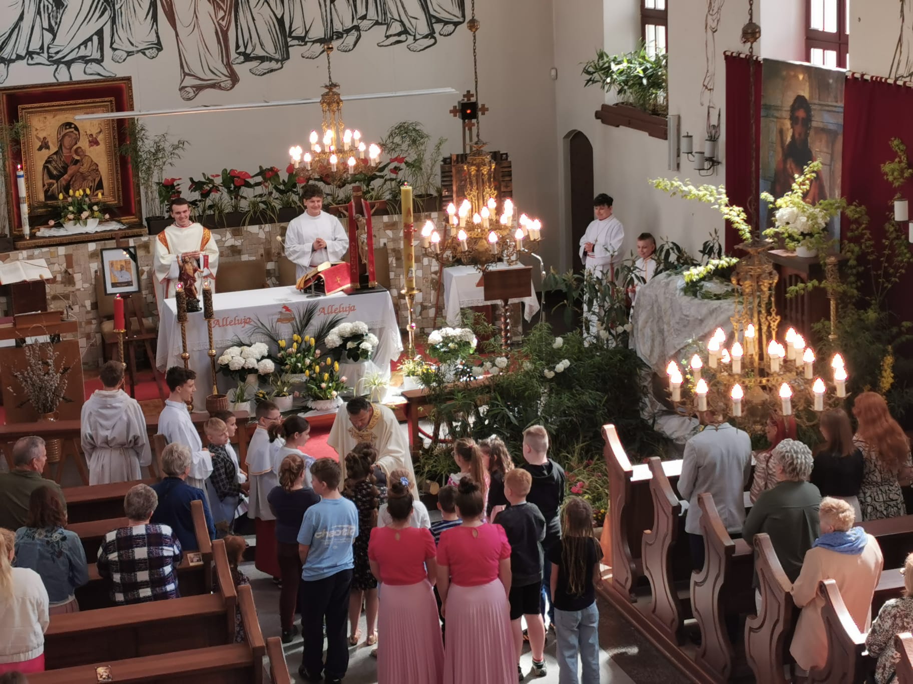 W poniedziałek Wielkanocny w dalszym ciągu przeżywaliśmy radość Zmartwychwstania Chrystusa, uczestnicząc we Mszy Świętej i wspólnej modlitwie. Po liturgii nie zabrakło też tradycyjnej zabawy – Śmigusa-Dyngusa, czyli radosnych bitew na wodę wśród najmłodszych.