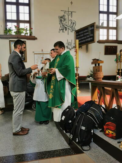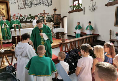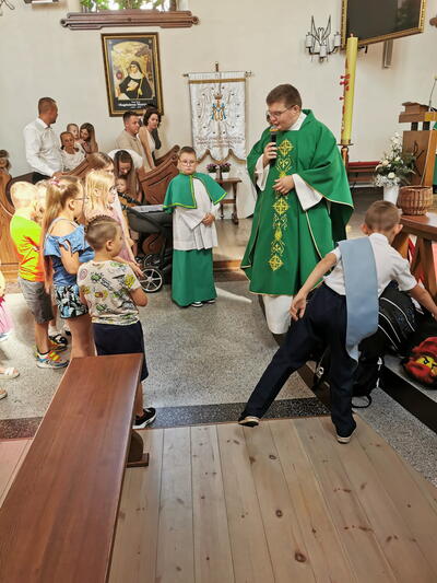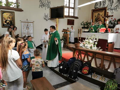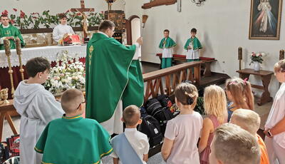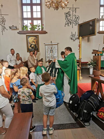 Podczas Mszy Świętej o godz. 12:00 w niedzielę 8 września, Ks. Adrian Figurski poświęcił dzieciom plecaki i tornistry. W ten sposób dzieci zaprosiły do swojej nauki w szkole Pana Boga, prosząc Ducha Świętego o potrzebne dary i pomoc w zgłębianiu wiedzy.