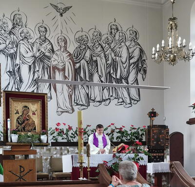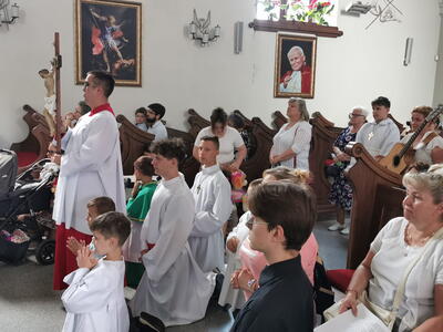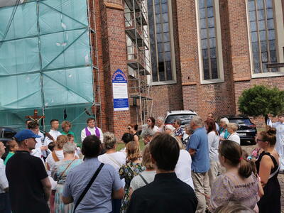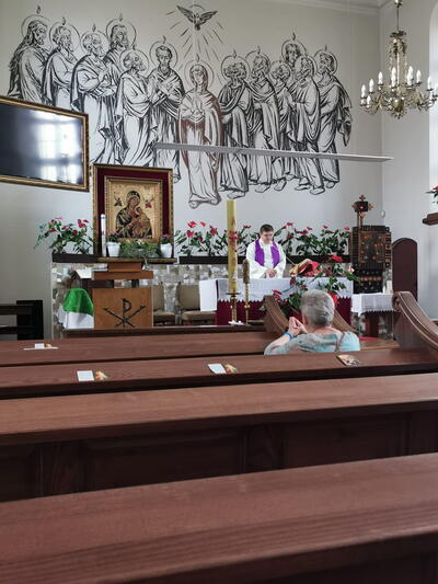 11 sierpnia w duchowej łączności z pielgrzymami zmierzającymi z Grudziądza na Jasną Górę w naszym parafialnym kościele odprawił Mszę Świętą ks. Andrzej Kusiński, która rozpoczęła minipielgrzymkę. Po Mszy Świętej zgromadzeni wraz z ks. Adrianem Figurskim udali się ze śpiewem na ustach do sanktuarium Matki Bożej Łaskawej - Bazyliki kolegiackiej św. Mikołaja w Grudziądzu.