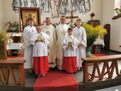 W uroczystość Wniebowzięcia NMP, podczas Eucharystii o godz. 11:00 miał miejsce obrzęd ustanowienia lektora, którym został Szymon. Także tego samego dnia dwóch ministrantów Bartek i Olek otrzymali kołnierze i rokiet ministrancki. To wyróżnienie dla naszych ministrantów za ich gorliwość i sumienność w służbie przy ołtarzu Pańskim.