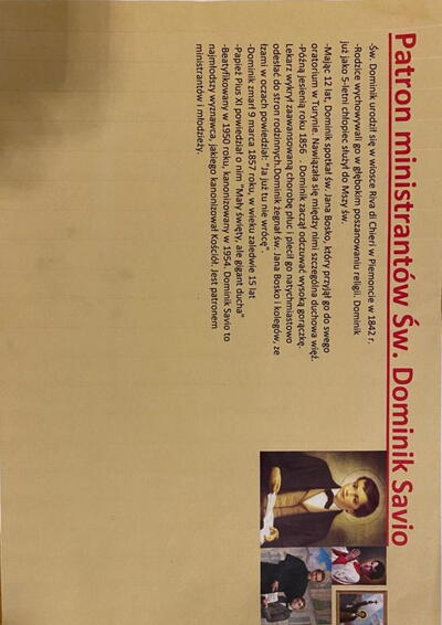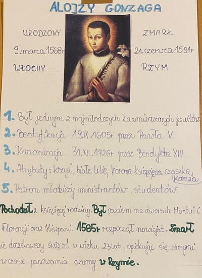 W październiku Liturgiczna Służba Ołtarza wzięła udział w konkursie na temat: „Mój ulubiony patron ministrantów”. Prace ministranci mogli wykonywać wspólnie z rodzicami i rodzeństwem. Głównym celem konkursu było przybliżenie sylwetek patronów oraz na przykładzie ich życia ukazanie wzorów życia chrześcijańskiego. Inicjatorem konkursu był Oskar, prezes ministrantów.