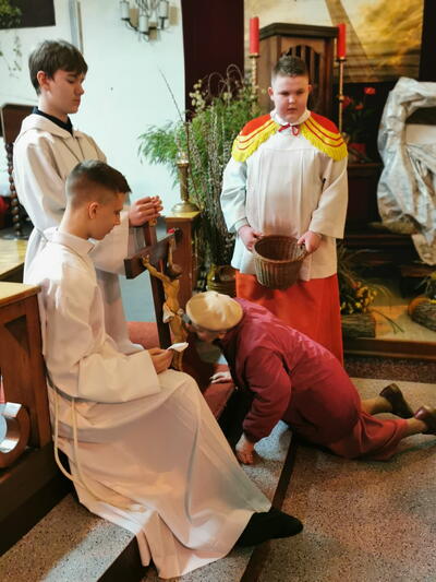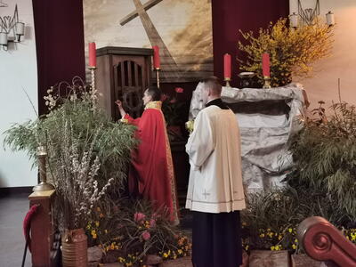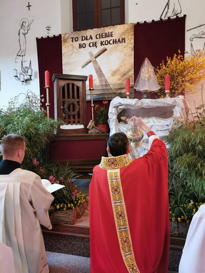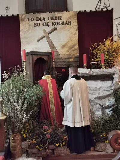 We Wielki Piątek nie odprawia się Mszy Świętej. Tego dnia wierni uczestniczą w Liturgii Męki Pańskiej, której centralnym momentem jest adoracja Krzyża. Drugi dzień Triduum Paschalnego to czas zadumy, rozmyślania i pustki po śmierci Jezusa, ta pustka będzie towarzyszyła aż do Liturgii Wigilii Paschalnej.