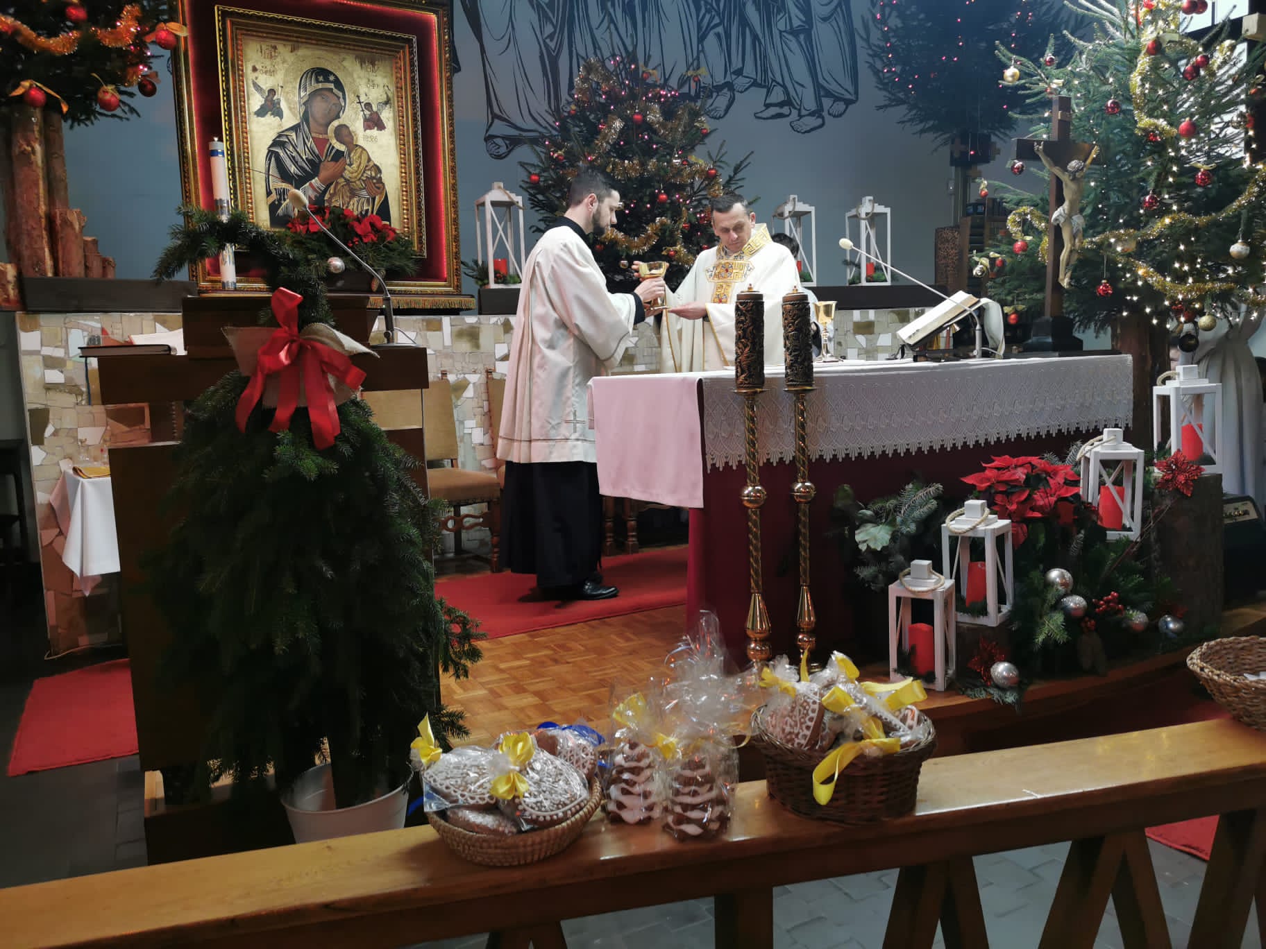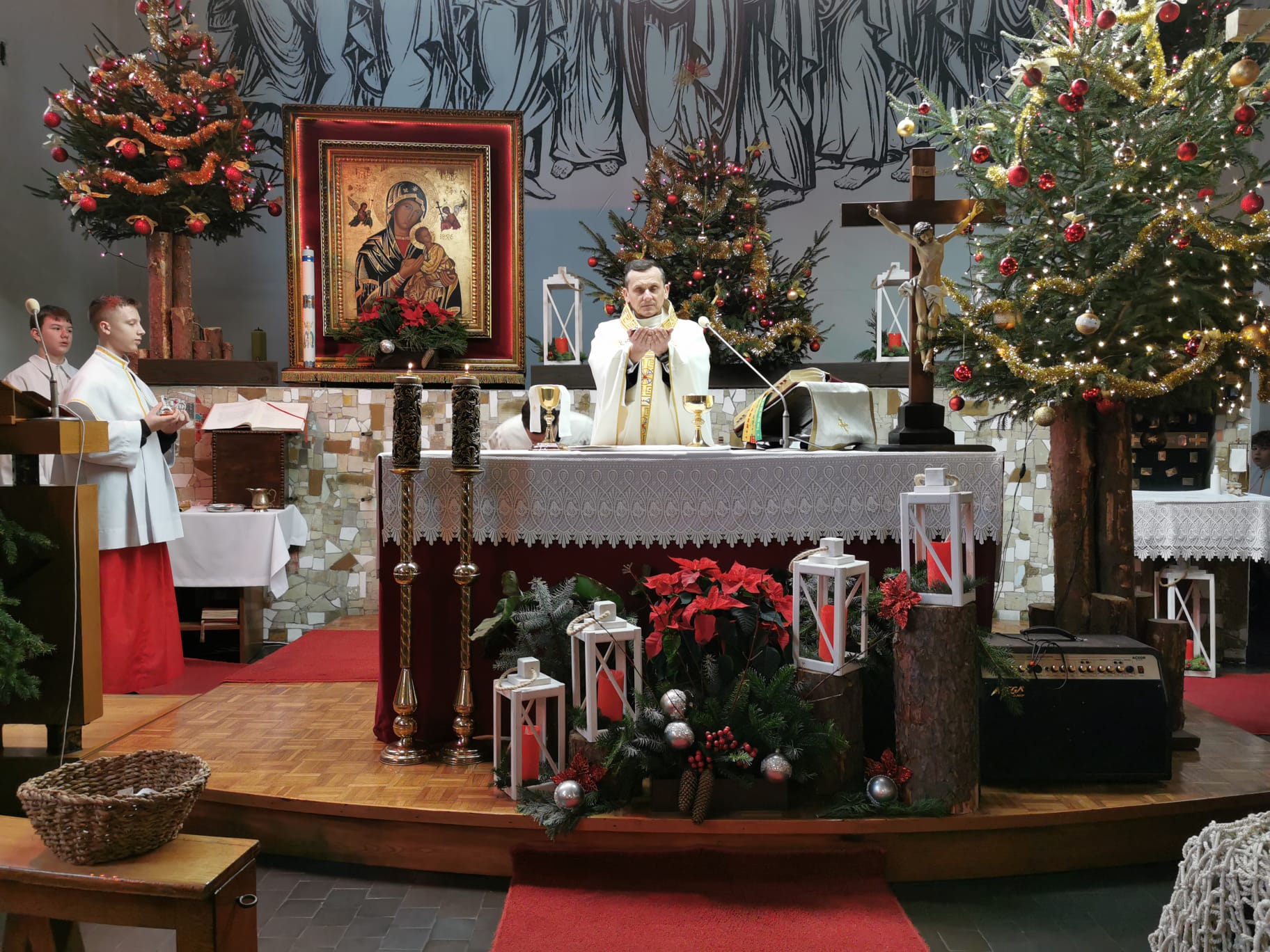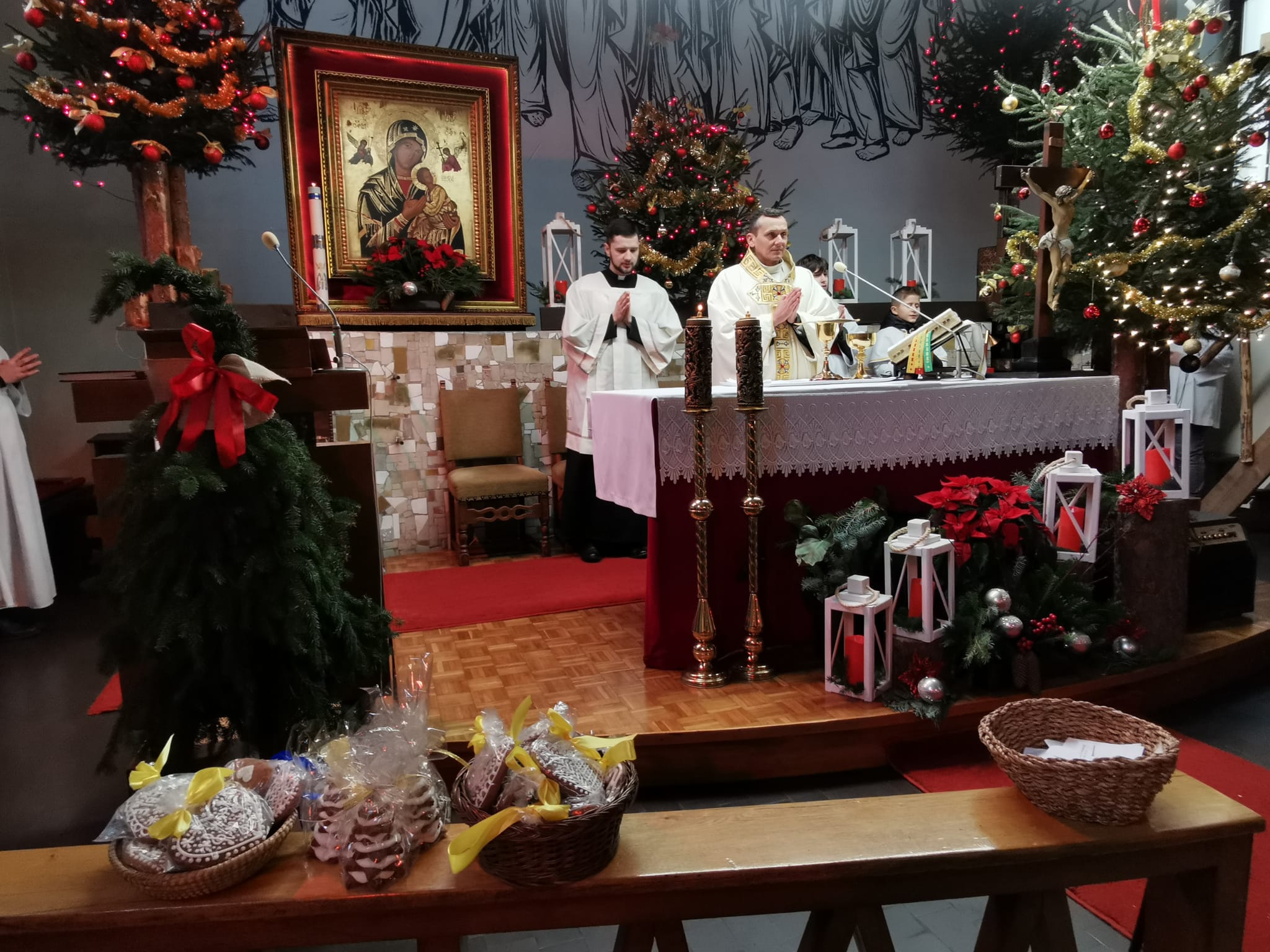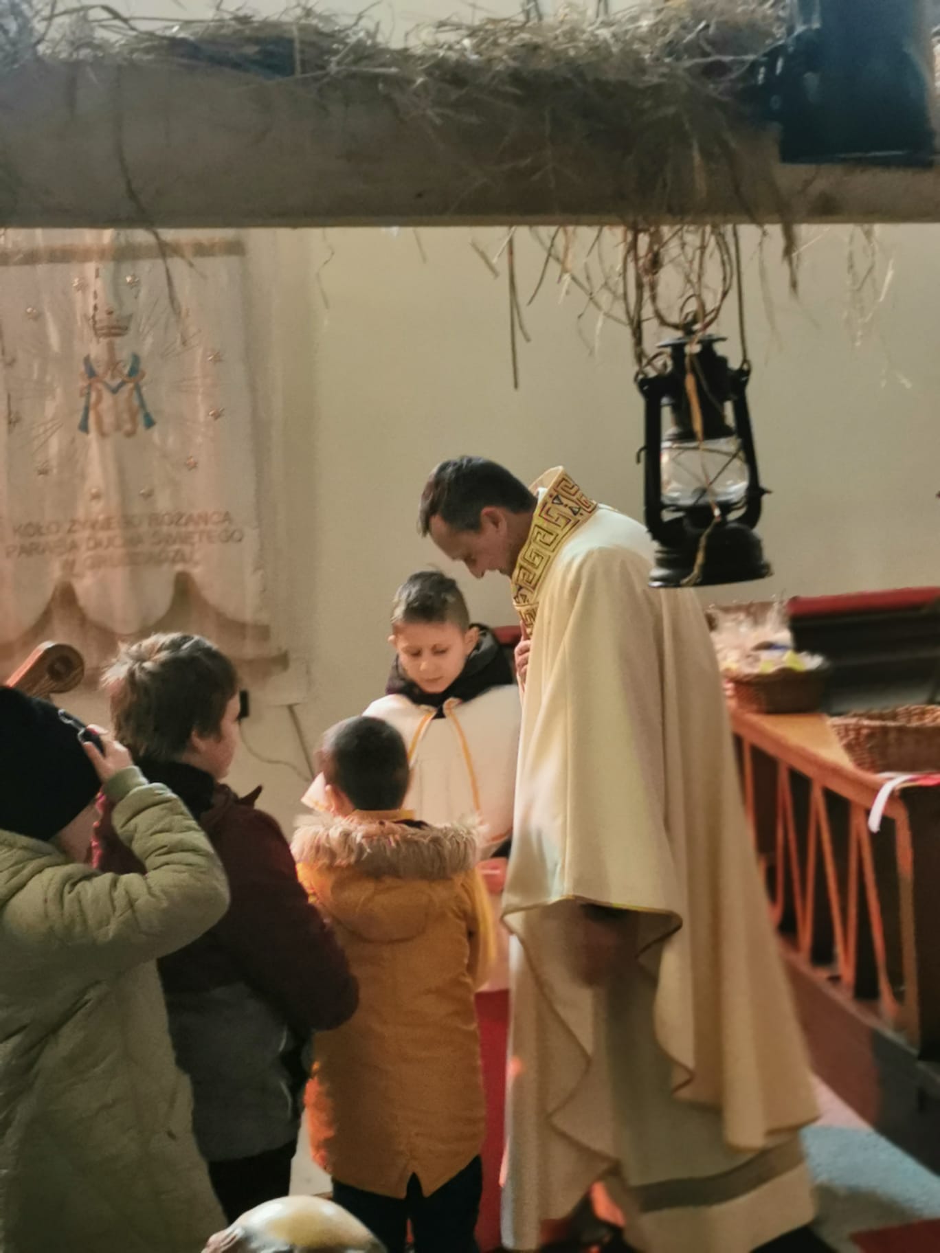W ostatnią niedzielę grudnia - 31.12.2023 obchodziliśmy Święto Świętej Rodziny, podczas Mszy Świętej o godz. 12:00 zgromadzone dzieci nauczyły się nowej piosenki pt.„Wołek i osiołek”, z pokazywaniem. Nasz parafialny zespół jak zwykle stanął na wysokości zadania i przygotował wspaniałą piosenkę. Podczas nauki piosenki poszczególne elementy wyjaśniał dzieciom kleryk Radosław.
