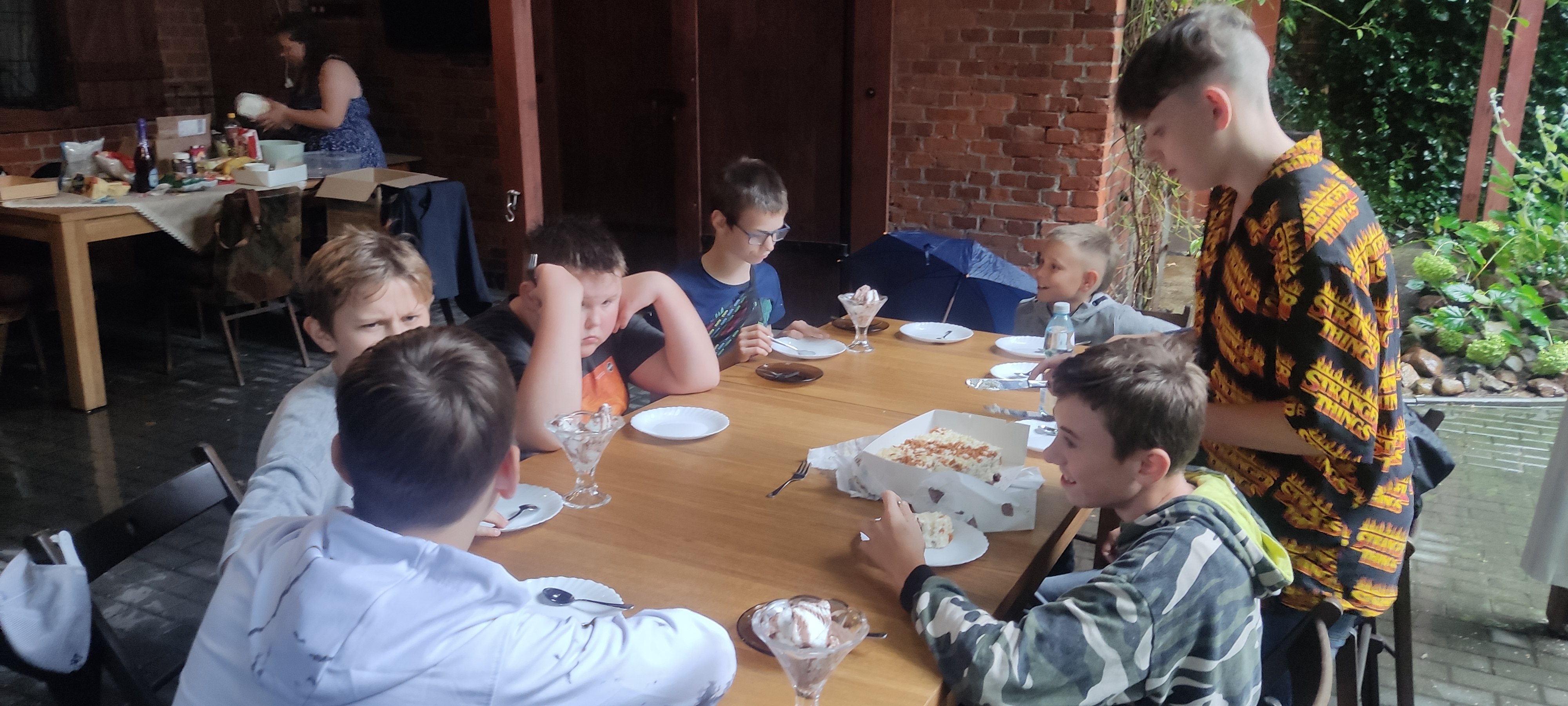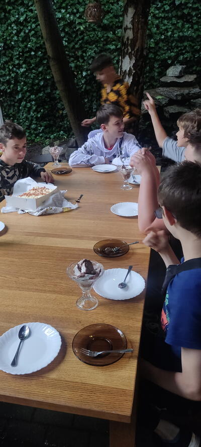 Będąc jeszcze myślami w dniu poprzednim, gdy zwiedzaliśmy Pola Grunwaldzkie i Iławę. Spotkaliśmy się w środę 30 sierpnia na kolejnym wakacyjnym spotkaniu. Już po raz drugi mogliśmy skosztować pysznych gofrów przygotowanych dla nas przez niezawodną Maję. Nadszedł czas na niespodziankę dla trzech pierwszych miejsc w biegu, a nagrodą był...pucharek lodów! Tego dnia świętowaliśmy również w ministranckiej wspólnocie urodziny Pawła. Jak poprzednim razem nie zabrakło wielu ciekawych zabaw.