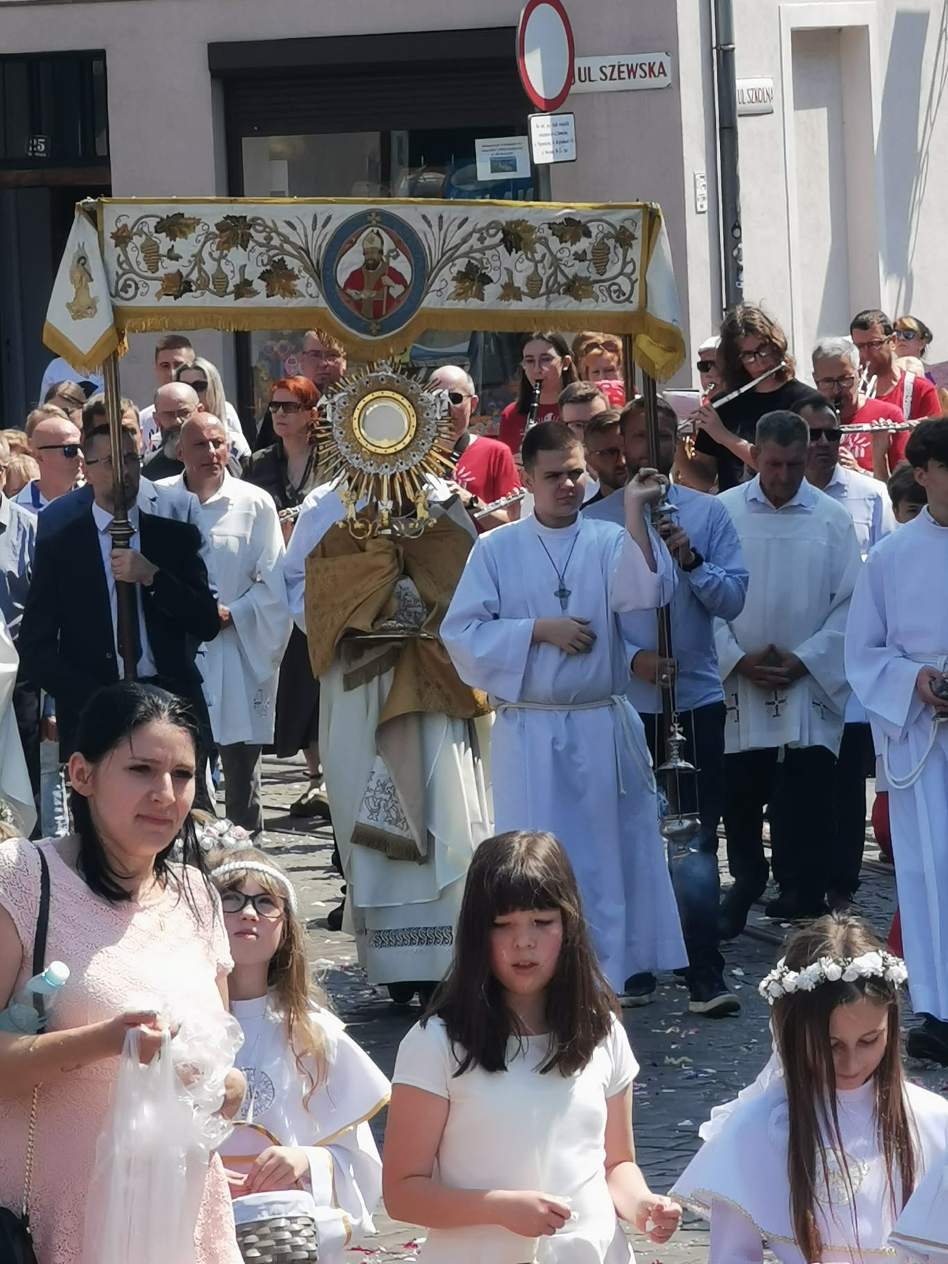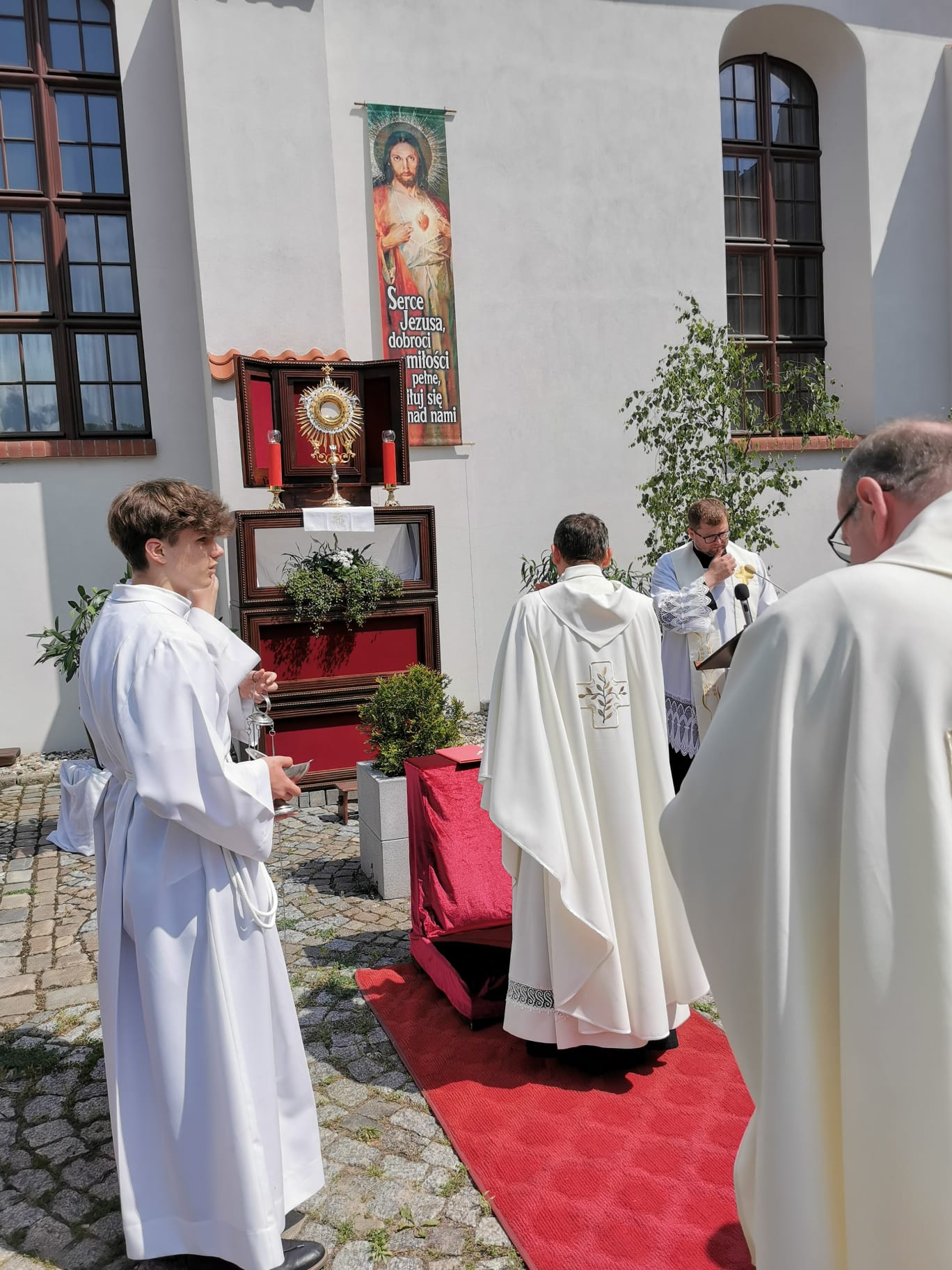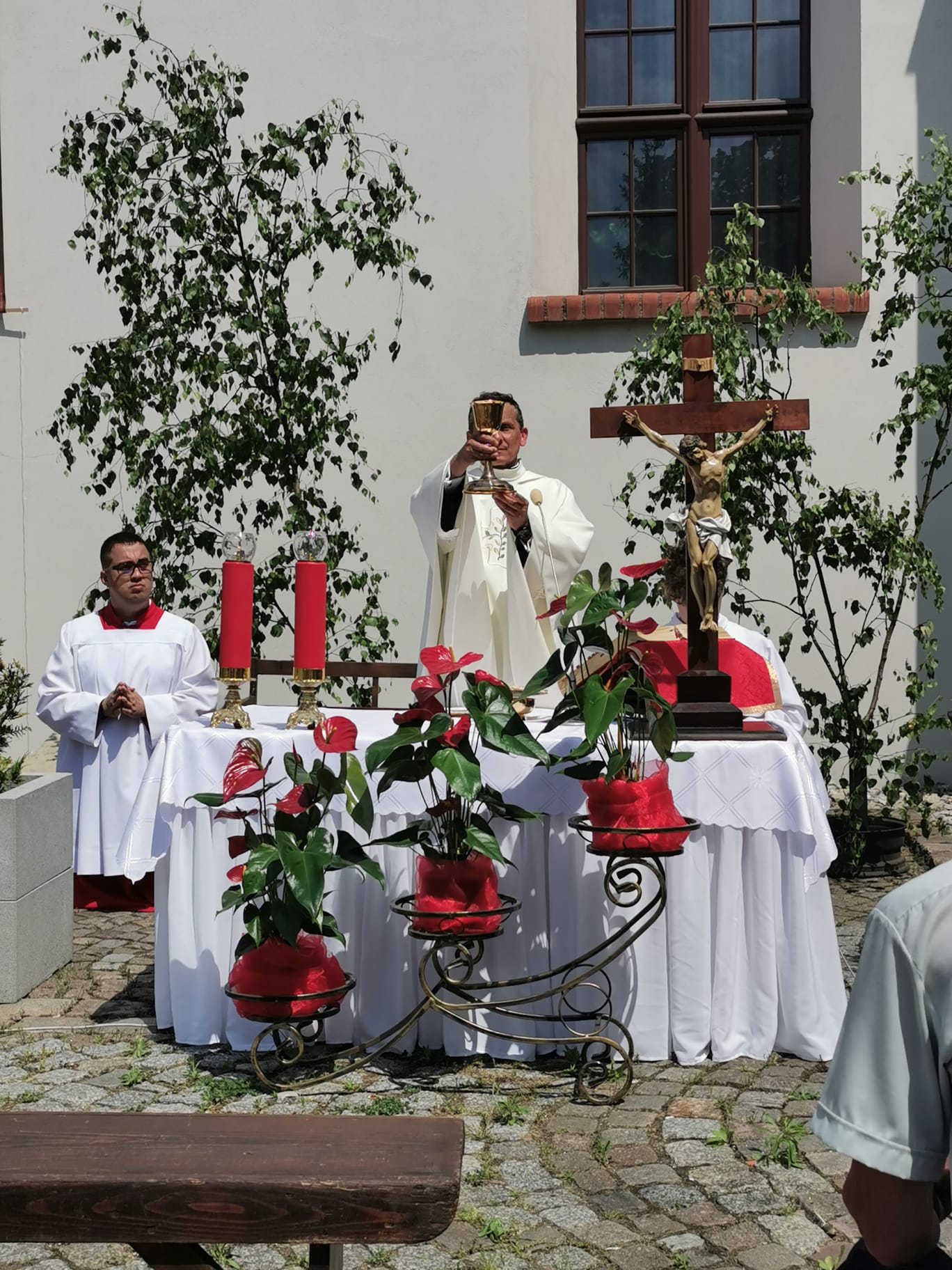 W czwartek po niedzieli Trójcy Świętej celebrowaliśmy uroczystość Najświętszego Ciała i Krwi Chrystusa, potocznie zwaną, Bożym Ciałem. Zwieńczeniem procesji eucharystycznej była Msza Święta sprawowana przy ostatnim ołtarzu, na dziedzińcu muzeum. Dziękujemy naszym parafianom i sympatykom oraz wspólnotom z naszego kościoła za zaangażowanie w przygotowanie ołtarzy. Oprawę muzyczną. Dziękujemy za niesienie sztandaru wspólnocie Żywego Różańca, dziewczynkom sypiącym kwiatki oraz Służbie Liturgicznej.