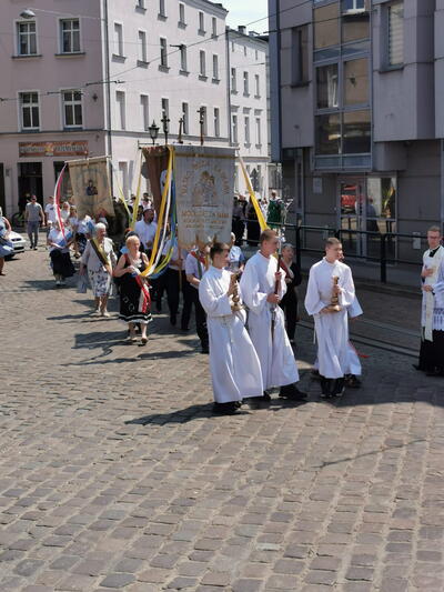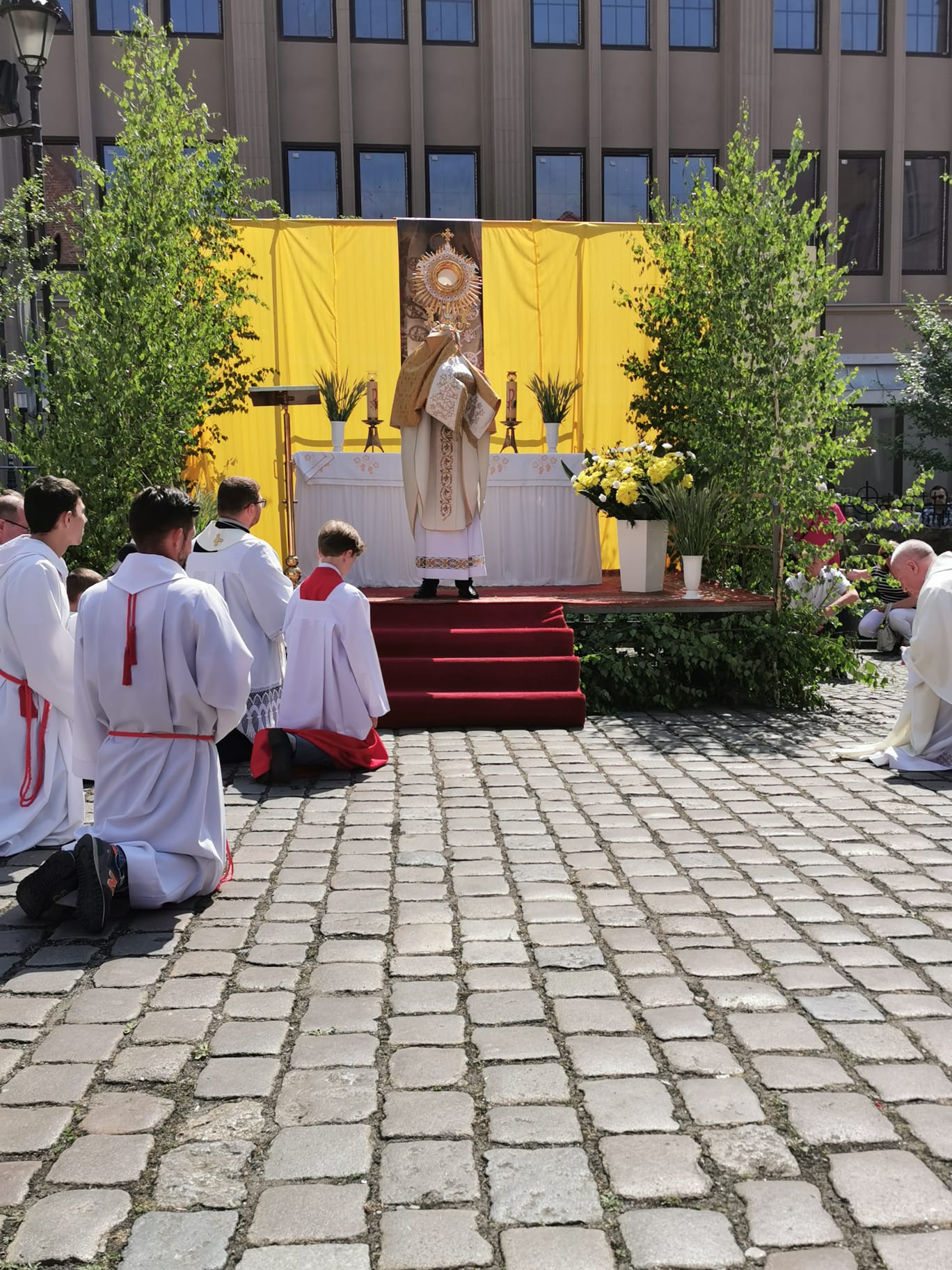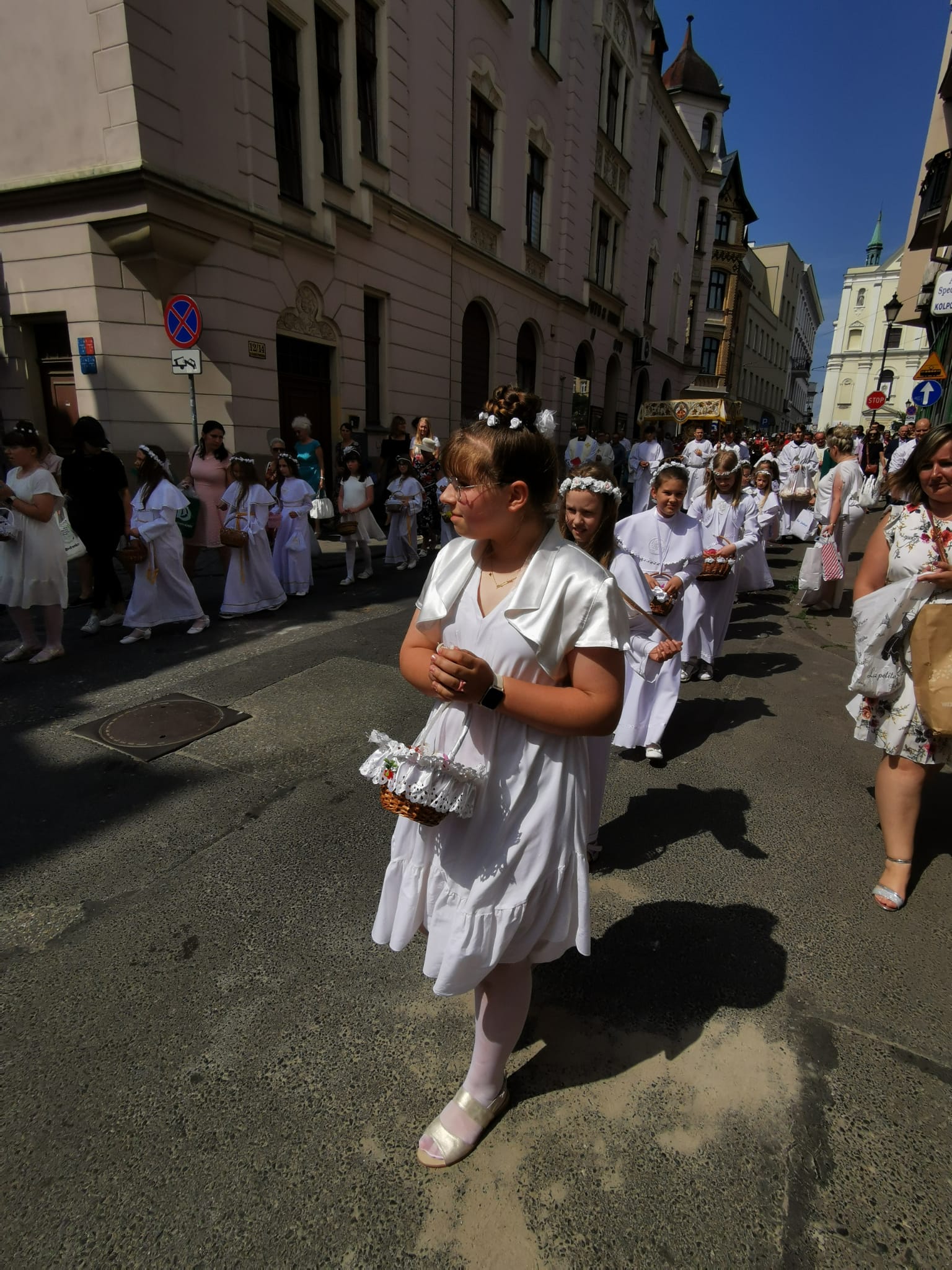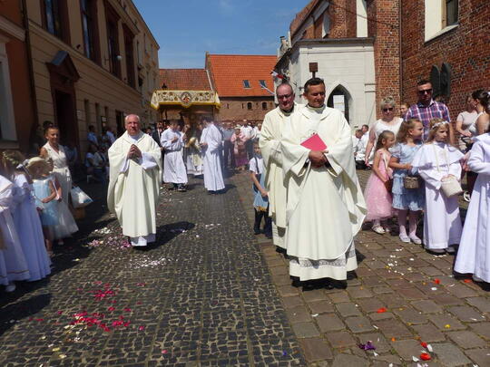 W czwartek po niedzieli Trójcy Świętej celebrowaliśmy uroczystość Najświętszego Ciała i Krwi Chrystusa, potocznie zwaną, Bożym Ciałem. Zwieńczeniem procesji eucharystycznej była Msza Święta sprawowana przy ostatnim ołtarzu, na dziedzińcu muzeum. Dziękujemy naszym parafianom i sympatykom oraz wspólnotom z naszego kościoła za zaangażowanie w przygotowanie ołtarzy. Oprawę muzyczną. Dziękujemy za niesienie sztandaru wspólnocie Żywego Różańca, dziewczynkom sypiącym kwiatki oraz Służbie Liturgicznej.