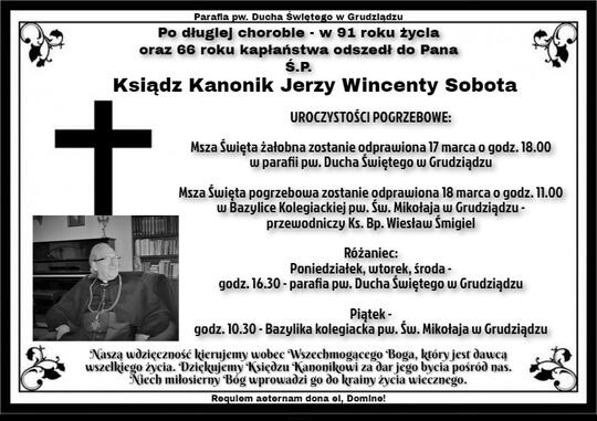 Msza Święta żałobna zostanie odprawiona 17 marca o godz. 18:00 w parafii pw. Ducha Świętego w Grudziądzu
