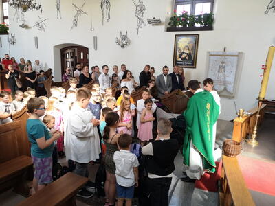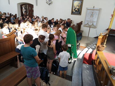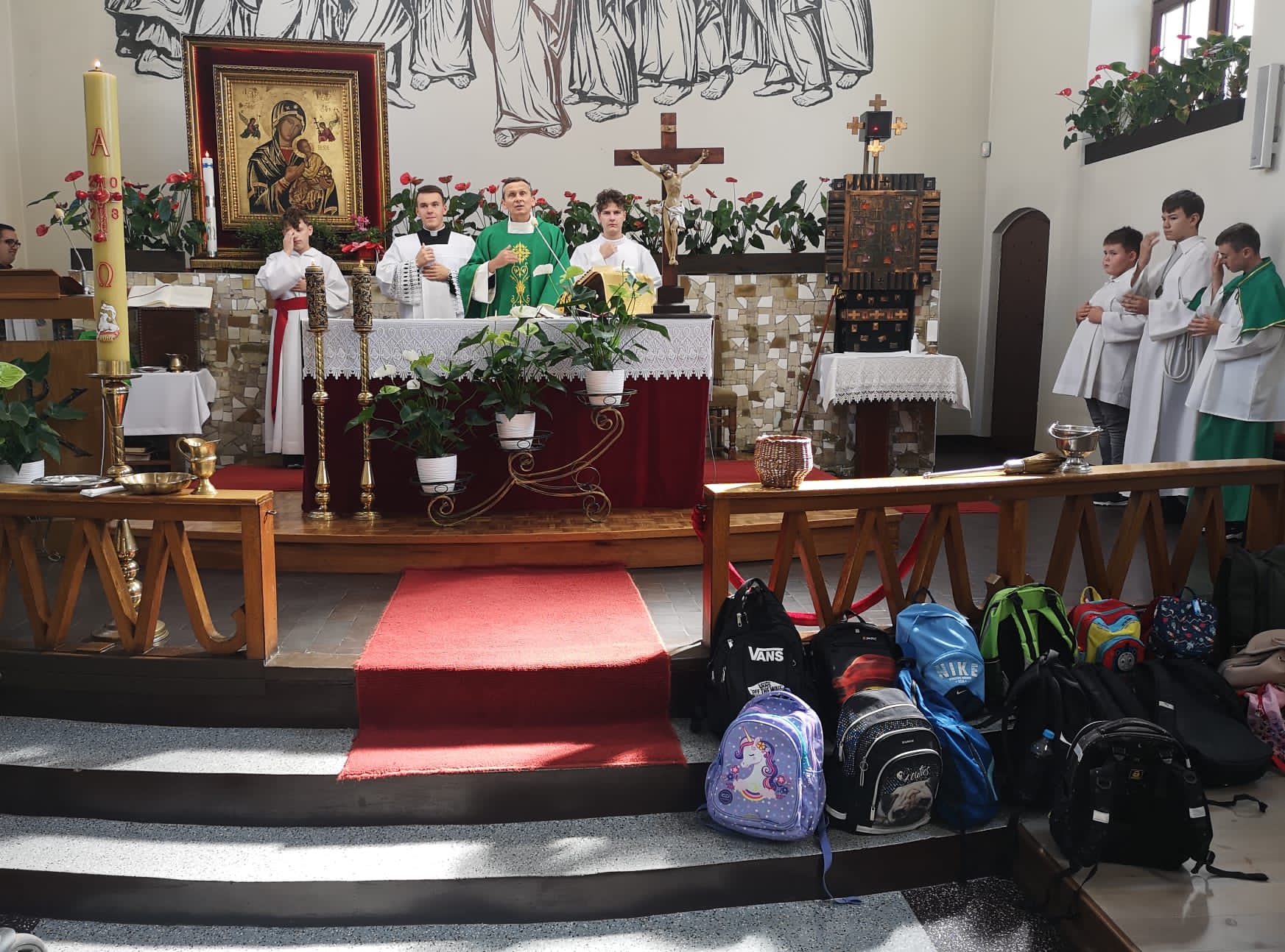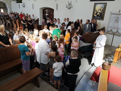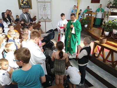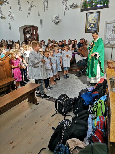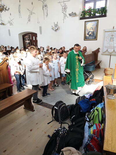 W niedzielę 10 września podczas Mszy Świętej o godz. 12:00 Ksiądz Proboszcz dokonał poświecenia tornistrów i plecaków dzieciom, które rozpoczęły nowy rok szkolny. Życzymy dzieciom błogosławieństw Bożego oraz wielu sukcesów naukowych podczas całego roku.