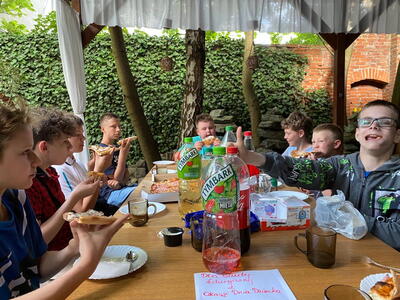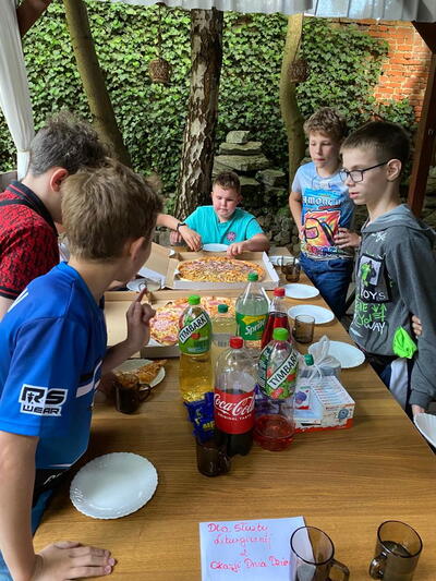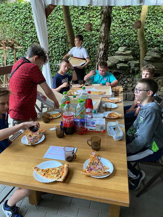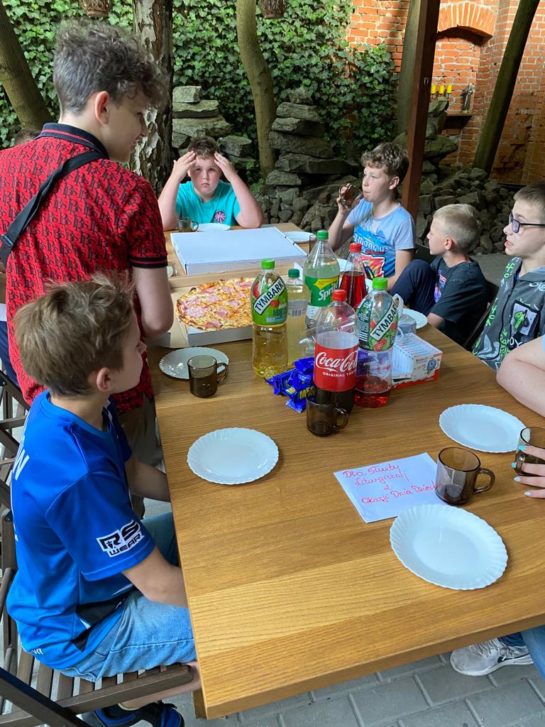 Dzień Dziecka - okazja do zabawy czwartek 13.07.2023 W czwartek po wieczornej Mszy Świętej ministranci z naszej parafii dzielili radość z okazji Dnia Dziecka, przy dobrej zabawie i pysznej pizzy. Po raz kolejny zabawy animowała nasza harcerka Maja.