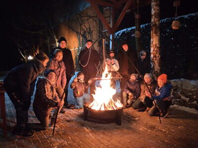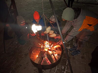 Pomimo siarczystego mrozu wszystkim było ciepło, można było ugrzać się przy promiennikach oraz przy ognisku, piekąc kiełbaski. Spotkanie z rówieśnikami przyniosło naszym ministrantom wiele radości. Sprzyjały temu także zawody w bieganiu oraz rzucanie się śnieżkami. W tłusty czwartek nie mogło zabraknąć pączków, które zniknęły w mgnieniu oka.