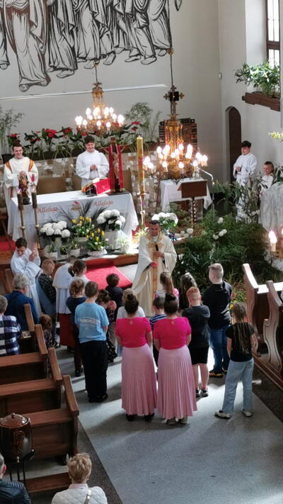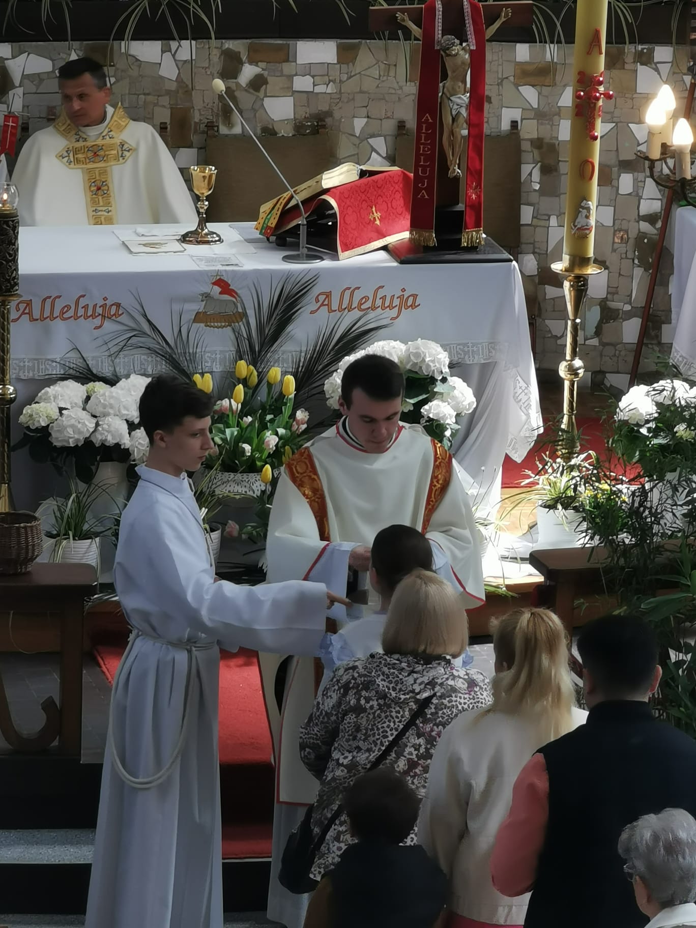 W poniedziałek Wielkanocny w dalszym ciągu przeżywaliśmy radość Zmartwychwstania Chrystusa, uczestnicząc we Mszy Świętej i wspólnej modlitwie. Po liturgii nie zabrakło też tradycyjnej zabawy – Śmigusa-Dyngusa, czyli radosnych bitew na wodę wśród najmłodszych.
