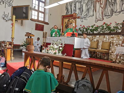 Podczas Mszy Świętej o godz. 12:00 w niedzielę 8 września, Ks. Adrian Figurski poświęcił dzieciom plecaki i tornistry. W ten sposób dzieci zaprosiły do swojej nauki w szkole Pana Boga, prosząc Ducha Świętego o potrzebne dary i pomoc w zgłębianiu wiedzy.