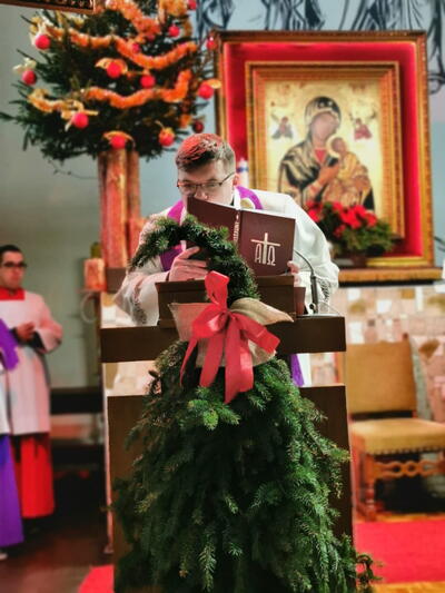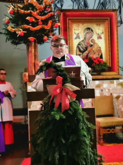 Podczas IV niedzieli Adwentu na wszystkich Mszach Świętych słowo Boże do wiernych skierował nasz ksiądz neoprezbiter Adrian Figurski, który prowadził dla nas ostatnie rekolekcje wielkopostne. W bezpośrednim przygotowaniu do Świąt Bożego Narodzenia Ks. Adrian służył również posługą w konfesjonale.