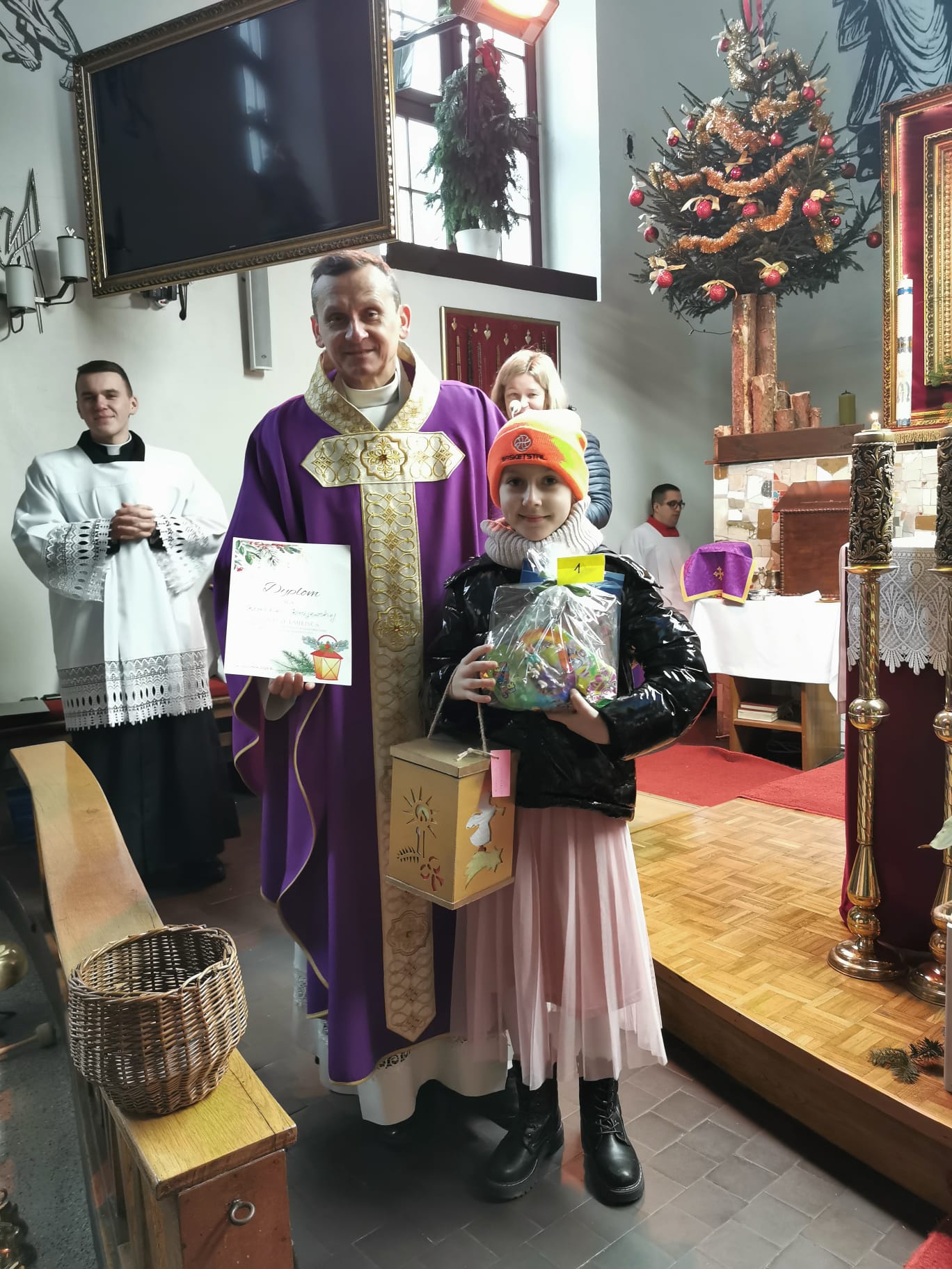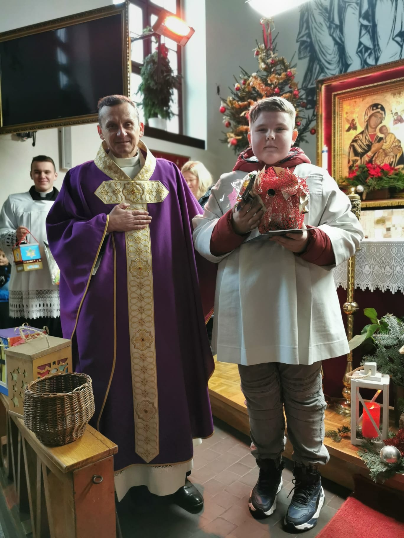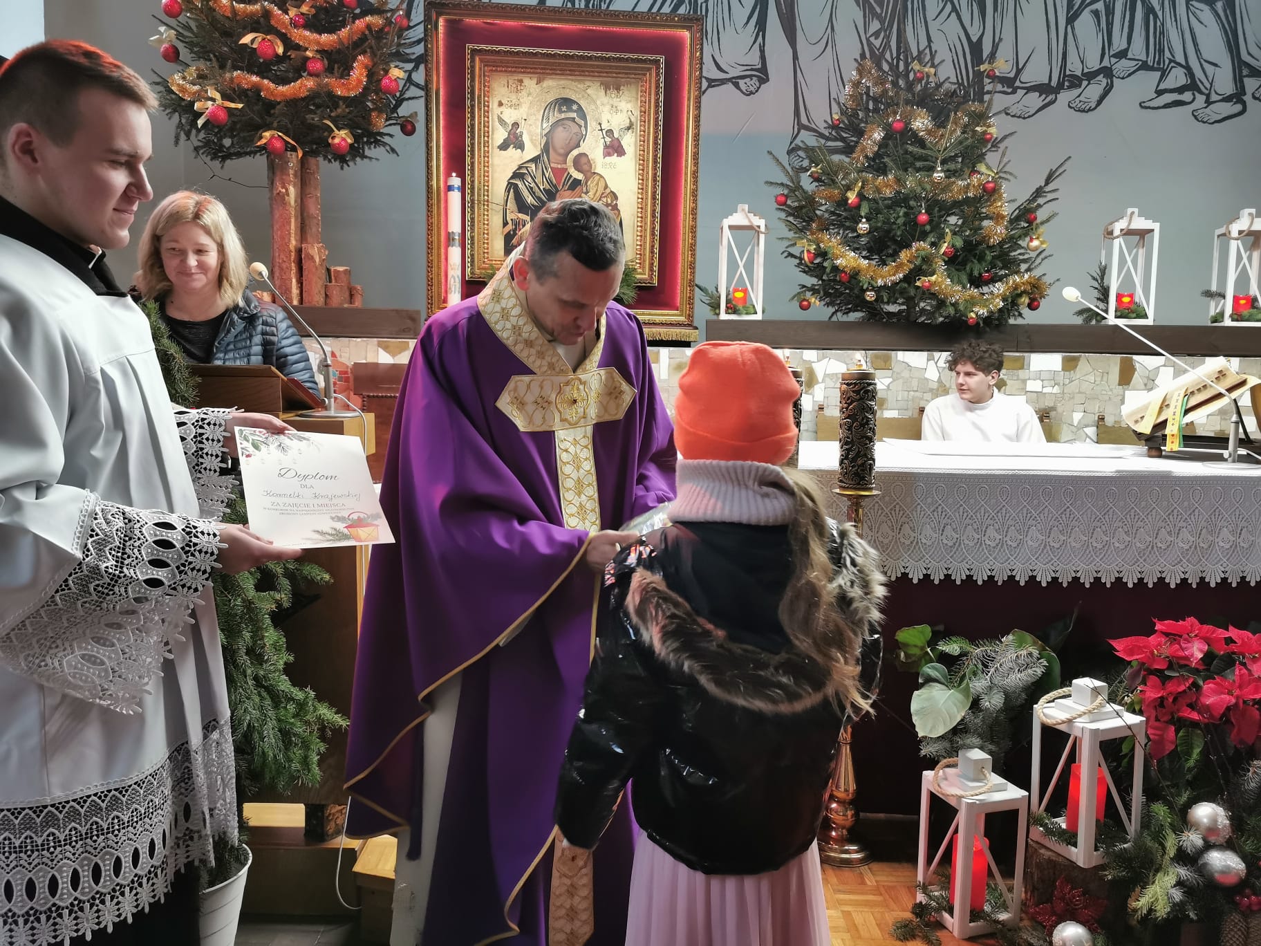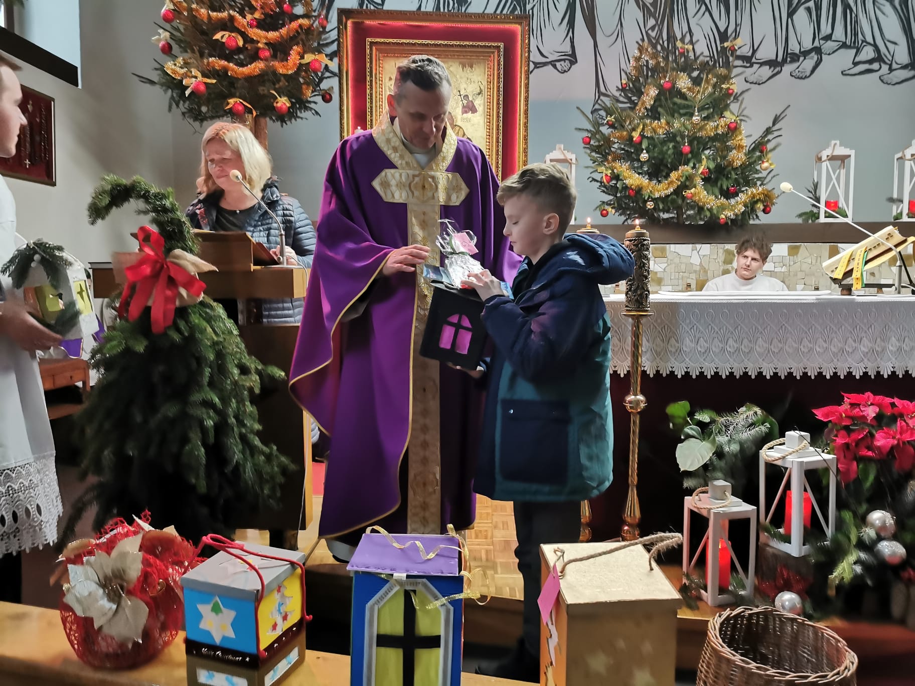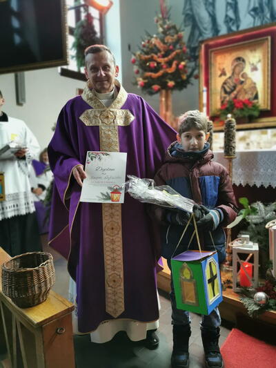 W pierwszy dzień Świąt Bożego Narodzenia, pod koniec Mszy Świętej o godz. 12:00 z udziałem dzieci, miało miejsca rozstrzygnięcie konkursu na najpiękniejszy lampion adwentowy. Komisja konkursowa zgodnie przyznała, że wszystkie lampiony zostały wykonane ze starannością i cieszą oko oglądających. Pani Katechetka Renata przedstawiła grono nagrodzonych, a Ksiądz Proboszcz wręczał nagrody. Każde z dzieci biorących udział zostało nagrodzone słodką niespodzianką, a dla pierwszych trzech miejsc czekały dodatkowe upominki oraz dyplomy.