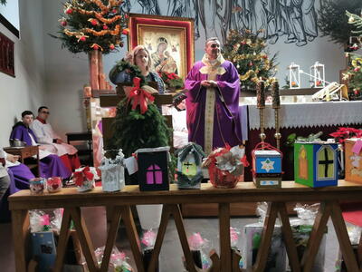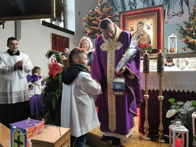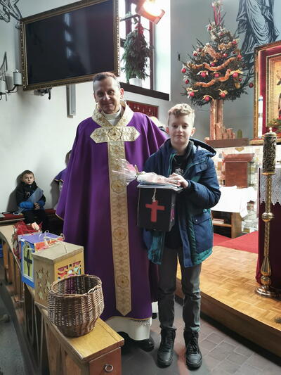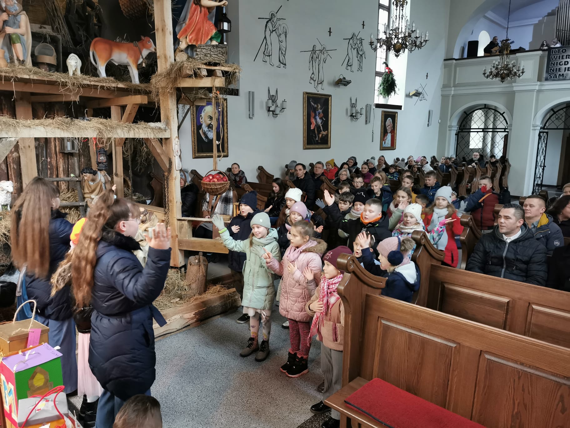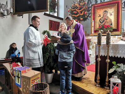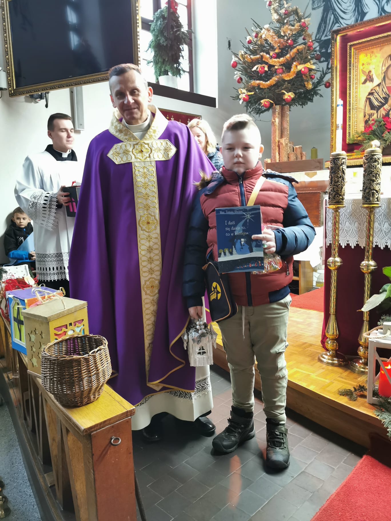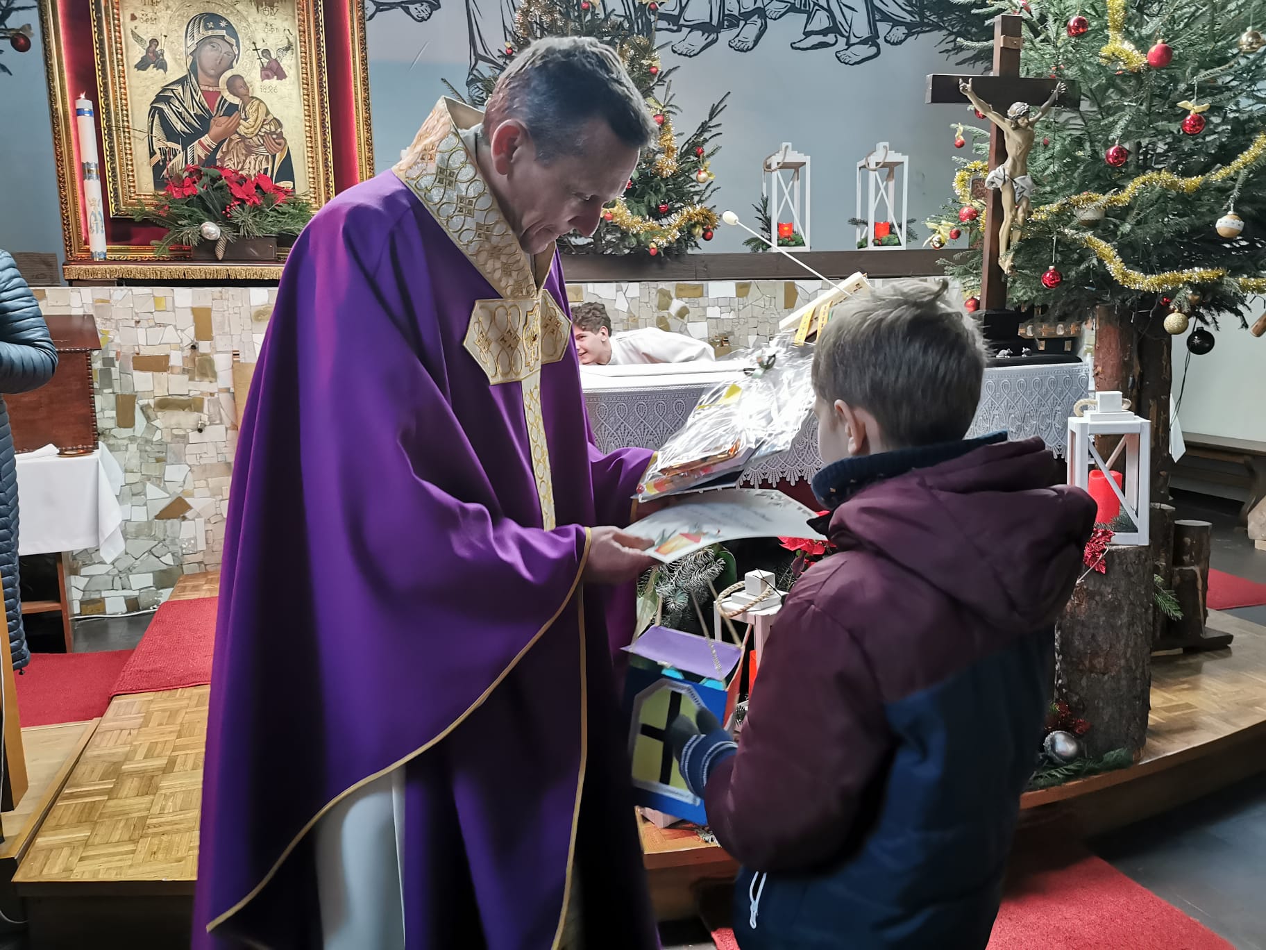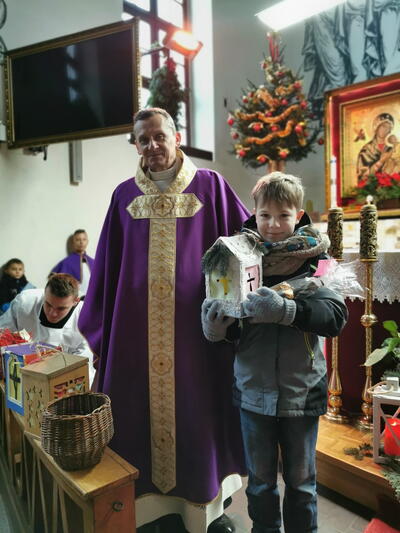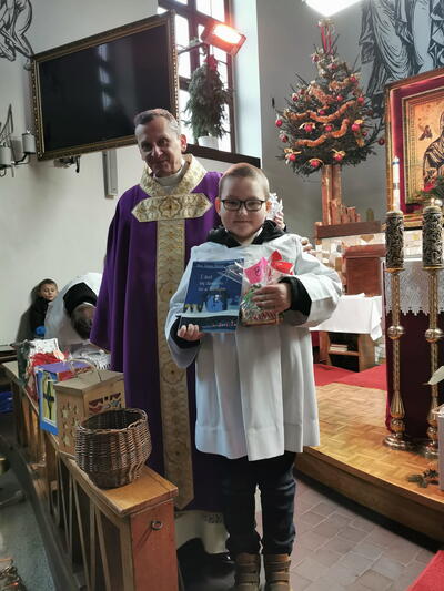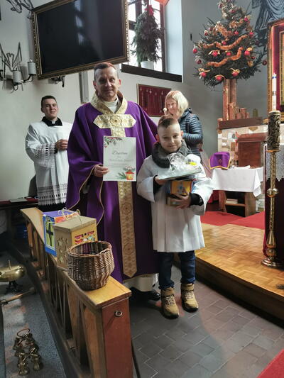 W pierwszy dzień Świąt Bożego Narodzenia, pod koniec Mszy Świętej o godz. 12:00 z udziałem dzieci, miało miejsca rozstrzygnięcie konkursu na najpiękniejszy lampion adwentowy. Komisja konkursowa zgodnie przyznała, że wszystkie lampiony zostały wykonane ze starannością i cieszą oko oglądających. Pani Katechetka Renata przedstawiła grono nagrodzonych, a Ksiądz Proboszcz wręczał nagrody. Każde z dzieci biorących udział zostało nagrodzone słodką niespodzianką, a dla pierwszych trzech miejsc czekały dodatkowe upominki oraz dyplomy.