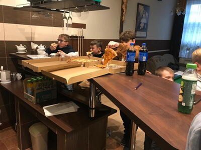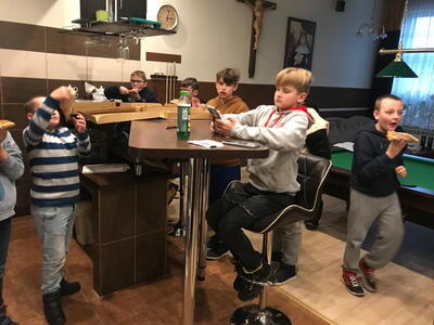 Pod koniec roku liturgicznego Służba Liturgiczna z naszej parafii spotkała się w salce domu parafialnego, aby podsumować mijający już rok kościelny. Spotkanie ministrantów przebiegało w radosnej atmosferze przy pizzy i grze w piłkarzyki.