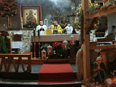 Uroczystą celebracją Mszy Świętej o północy tzw. Pasterką rozpoczęliśmy Święta Bożego Narodzenia. Eucharystię poprzedził śpiew z Martyrologium Rzymskiego o narodzeniu Chrystusa. Wszyscy, którzy nie mogli uczestniczyć w Mszy Świętej o północy, mogli rozpocząć świętowanie wcześniej podczas Eucharystii o godz. 22:00.