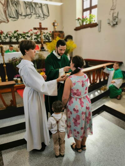 W niedzielę 18 sierpnia naszą wspólnotę parafialną odwiedził dk. Janusz Wiczarski MIC. Tego dnia podczas Mszy Świętej o godz. 11:00 skierował słowo Boże do wiernych. Cieszymy się z wizyty dk. Janusza w naszej parafii, który na co dzień odbywa formację zakonną w Lublinie.