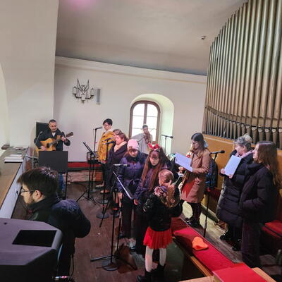 Kolędowanie przy żłóbku z parafialnym zespołem