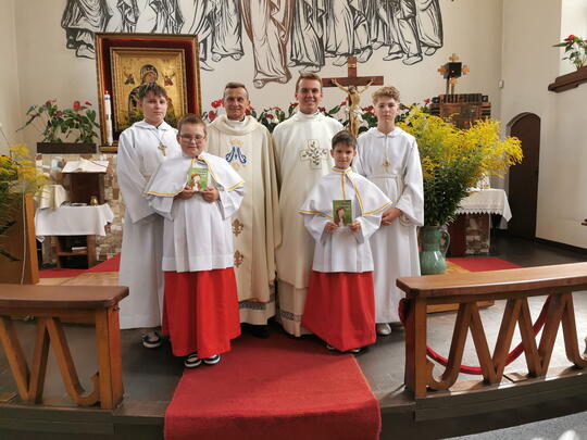 W uroczystość Wniebowzięcia NMP, podczas Eucharystii o godz. 11:00 miał miejsce obrzęd ustanowienia lektora, którym został Szymon. Także tego samego dnia dwóch ministrantów Bartek i Olek otrzymali kołnierze i rokiet ministrancki. To wyróżnienie dla naszych ministrantów za ich gorliwość i sumienność w służbie przy ołtarzu Pańskim.