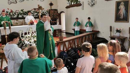 Podczas Mszy Świętej o godz. 12:00 w niedzielę 8 września, Ks. Adrian Figurski poświęcił dzieciom plecaki i tornistry. W ten sposób dzieci zaprosiły do swojej nauki w szkole Pana Boga, prosząc Ducha Świętego o potrzebne dary i pomoc w zgłębianiu wiedzy.