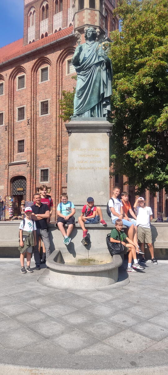 Na zakończenie wakacji udaliśmy się do Torunia wraz z Księdzem Proboszczem i Księdzem Diakonem Radosławem. Nasz dzień zaczęliśmy od Mszy Świętej w naszym kościele, po ktorej ruszyliśmy w drogę do Torunia. W między czasie zatrzymaliśmy się, aby wspólnie zjeść śniadanie, a po nim ruszyliśmy dalej. Gdy dojechaliśmy do Torunia, w pierwszej kolejności rozpoczęliśmy zwiedzanie miasta z przewodnikiem – Księdzem Diakonem Radosławem, który zapoznał nas z krótką historią miasta.