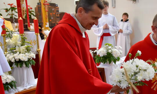 Jak uczniowie z Maryją w wieczerniku, tak 28 maja bieżącego roku o godz. 12:00 wspólnota parafialna zgromadziła się w kościele, aby uczestniczyć w odpuście parafialnym. Zesłanie Ducha Świętego jest objawieniem się Kościoła, Duch Święty wypełnił cały okrąg ziemi. To od tego wydarzenia mówić możemy o powszechności Kościoła.